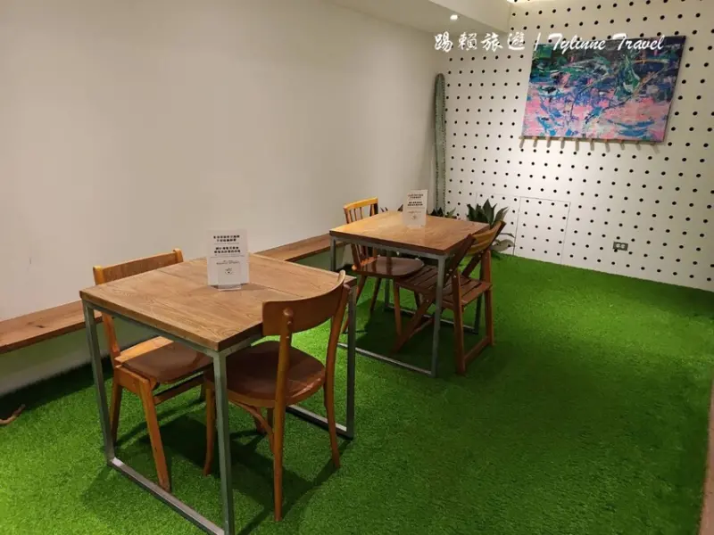 第四區樓下座位區,在櫃台旁邊的樓梯有一側是可以往下走,有小桌和包廂空間,搭配熱帶植物和仙人掌,讓人宛如置身熱帶小島。