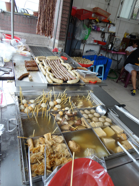就是上面的照片啦~店家所賣的就是關東煮、大腸和香腸~