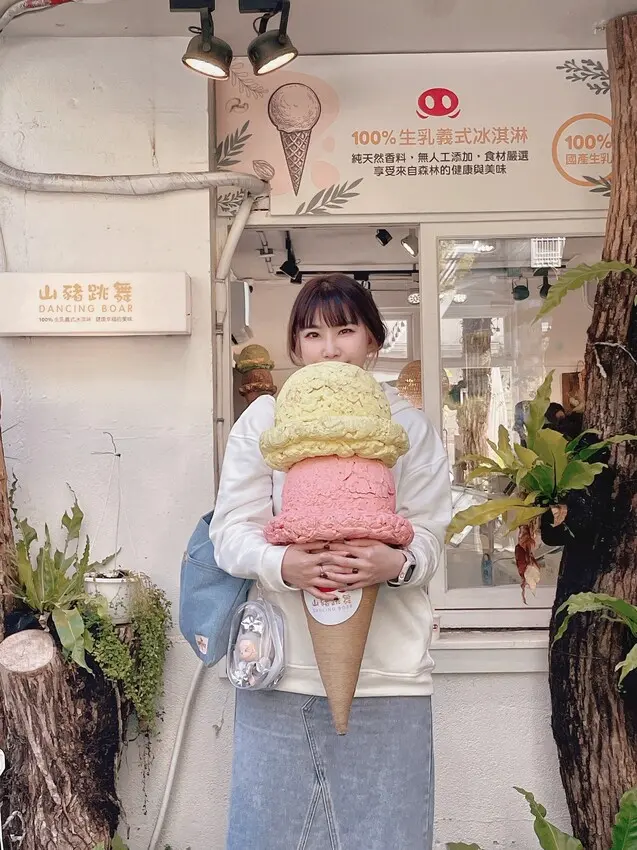 山豬跳舞的冰真的順口好吃,每一種口味都想嘗一口,記得吃完冰還要大拍特拍一輪,超大甜筒抱在手上無敵可愛,這裡絕對是來審計新村不能錯過的店啦