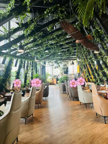 咖啡廳的室內裝潢,非常森林系列,採光非常明亮,作為區也很舒服