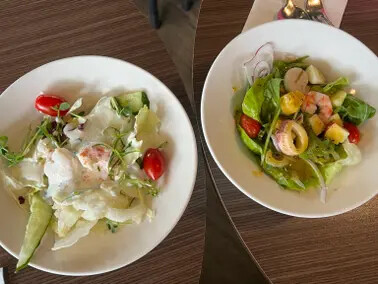 沙拉:握握小手農溫莎拉、海鮮水果沙拉以及貝里斯鮮蔬蝦仁伴檸檬優格,每到沙拉的油醋醬以及沙拉醬都非常開胃