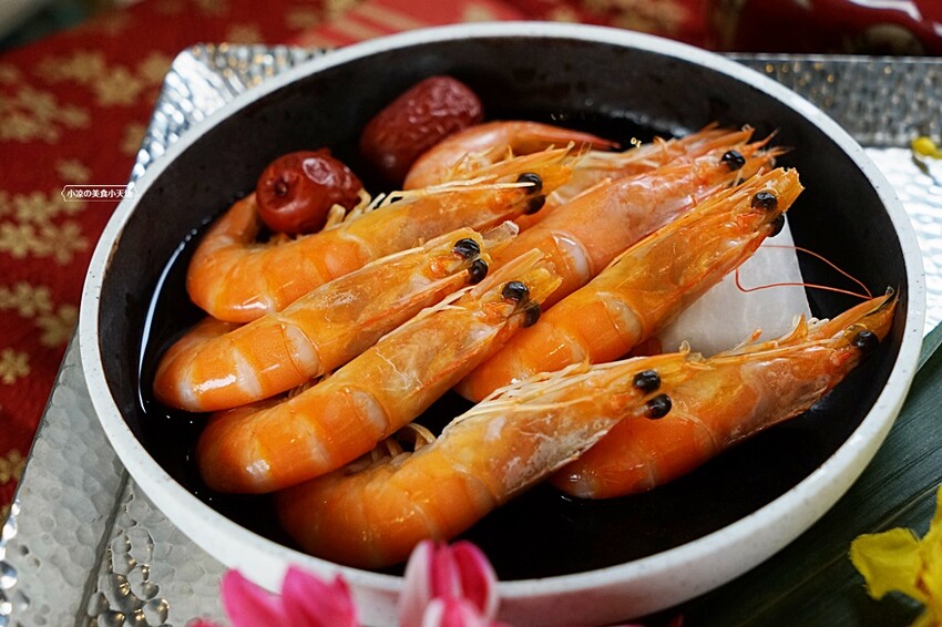 紅露醉蝦擁有迷人酒香並飄散淡雅的中藥香,吃起來Q彈又鮮美。