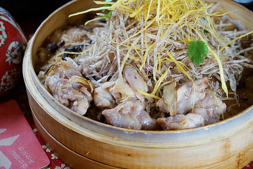 以台灣糯米蒸熟後拌入噴香的純麻油,再加上以舒肥方式料理的去骨麻油雞肉手工製作而成,內用加上的芋頭絲更有畫龍點睛的效益,讓口感更多元!