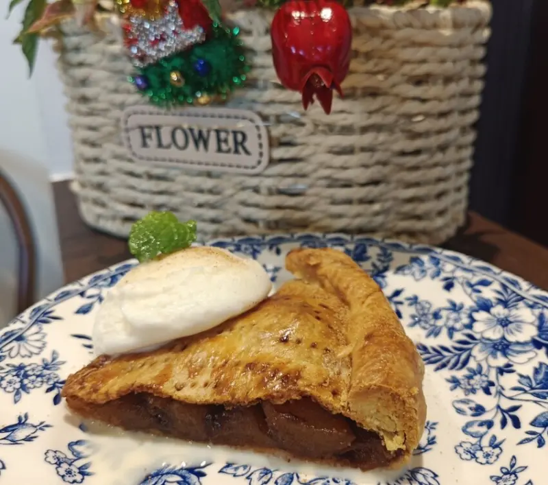 淡雅的肉桂香搭配蘋果的自然甜味,酥香的派皮微微熱乎,搭配一球冰淇淋,冰火交融,像極了秋冬午後的一抹暖陽,撫慰心靈的好味道。![]()