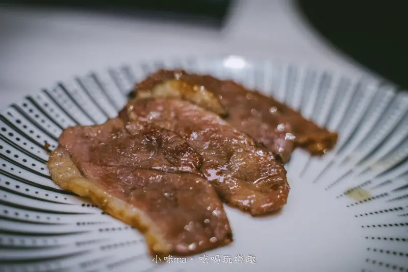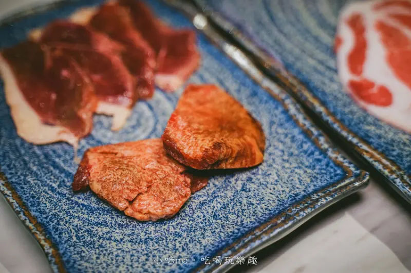 來吃燒肉怎麼能錯過蔥鹽牛舌,蔥鹽放在自助區自行夾取,牛舌油嫩多汁,夾進鹹香的蔥鹽醬一口塞,只能大喊"太完美啦~",記得再搭配一口啤酒更對味