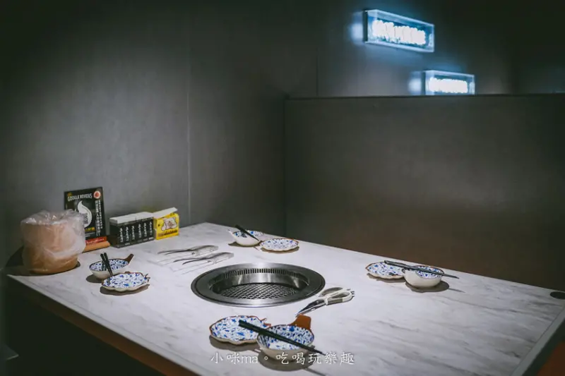 店內分成兩個區塊,左邊就是餐點自助吧,右邊跟後半都是座位區,內用座位很寬敞,每一格都有用隔板隔起來,就像是一個小包廂的概念,店內的排煙系統非常棒,走進來也不會聞到滿滿的烤肉油煙味