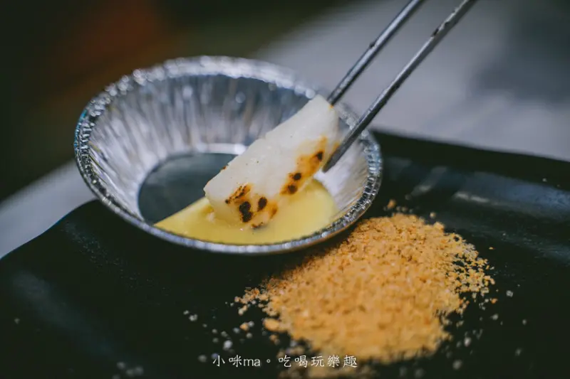 烤到外酥內Q的麻糬光是沾煉乳就有夠好吃,記得邊烤邊壓,讓他膨起來口感才是最棒的