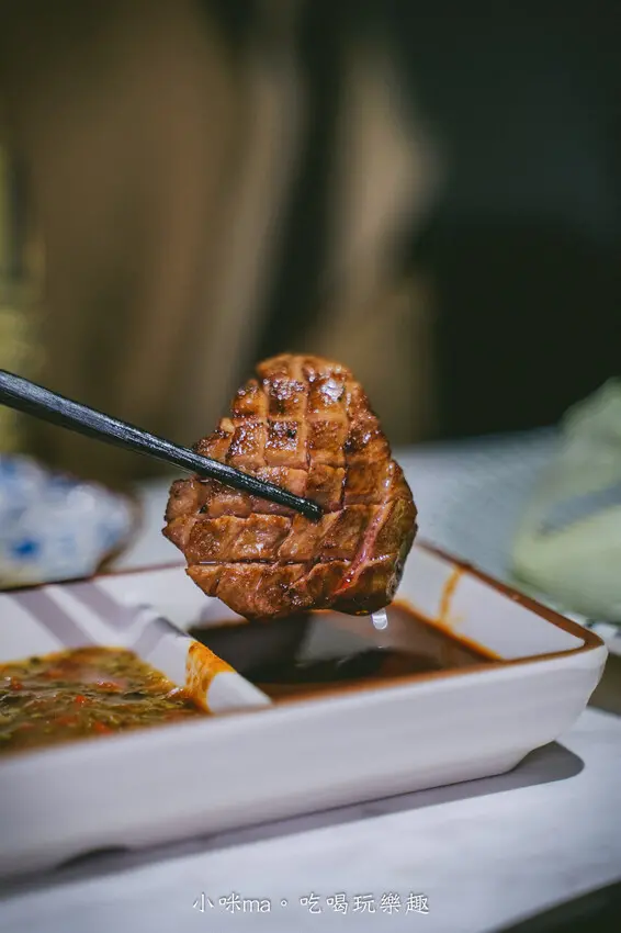 你看看這色澤是不是好吃的不要不要的,一口咬下還帶有脆度,香啊~跟一般薄片的牛舌完全是不同感受喔