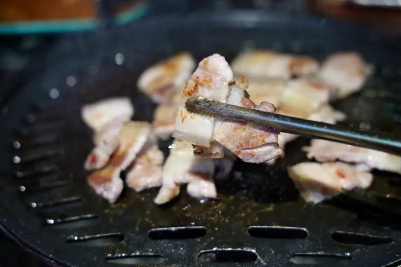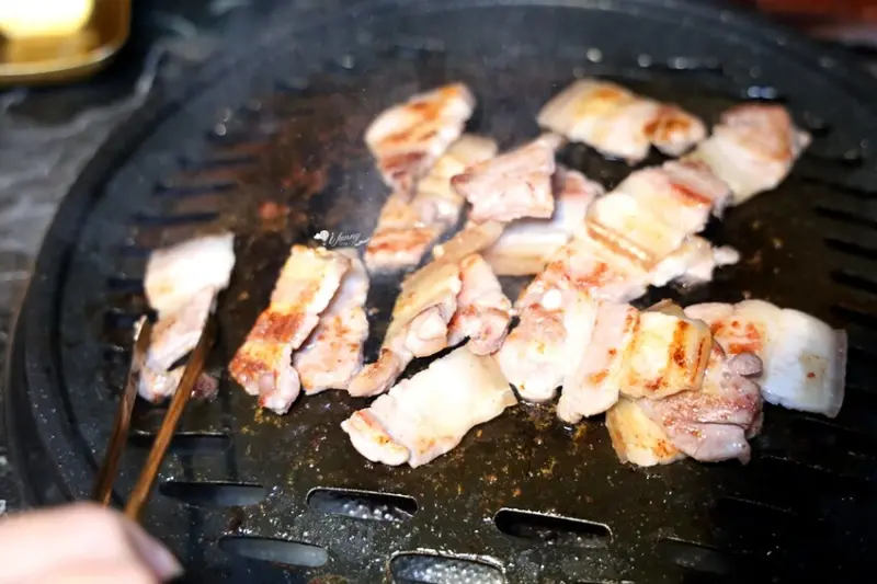 一定要把油脂逼出,烤到金黃酥脆,這樣的豬五花真的是又Q又美味。
