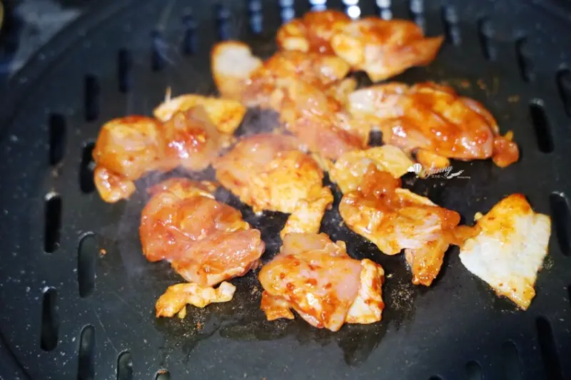 調味的肉品,會換上網狀的烤肉盤,比較不容易有烤焦的狀況。
