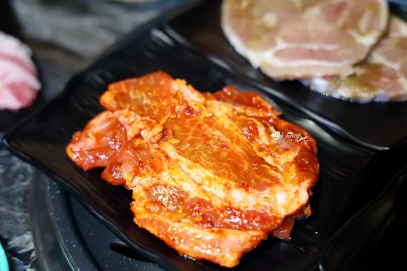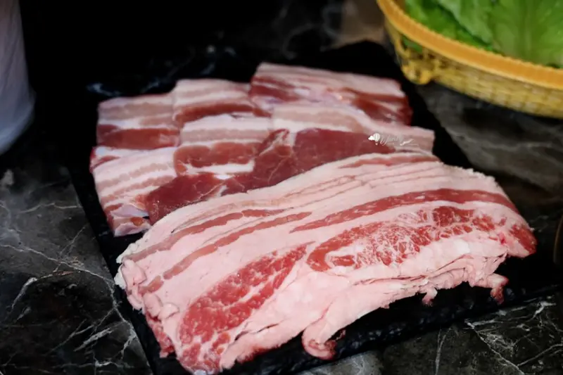 這一盤是沒有調味的肉品,有豬五花、梅花豬及牛五花。