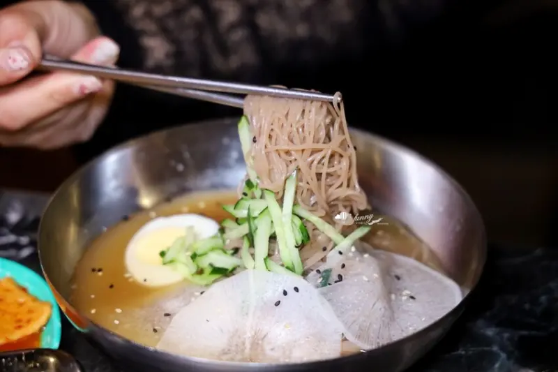 比起水冷麵,我們更愛辣拌冷麵的滋味,辣味提升了味蕾刺激,令人一吃就停不下來!即便美食滿桌,艾方妮卻吃了半碗才收歛!