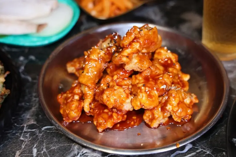 這天韓式炸雞外面裹附上甜甜的醬汁,無骨就是可以大口咬下,酥脆加上甜滋味,令人欲罷不能。