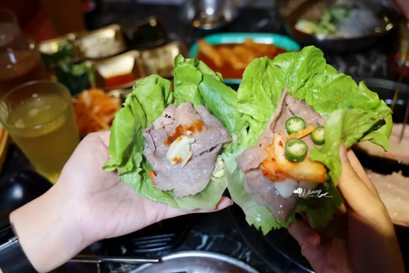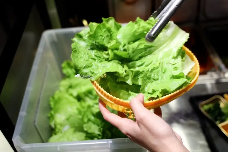 我們習慣生菜包肉也要包小菜,所以很快地我們又自己去自助區追加,尤其是韓式泡菜、蒜片及辣椒。