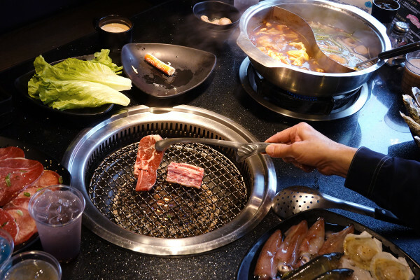每桌都有烤肉爐和火鍋爐,而且餐具、碗盤、面紙、調味品、垃圾桶全都備妥,不用一直找服務生要東西。烤肉的時候隨手調味,垃圾也能即時處理整個桌面乾淨整潔,吃得更自在、更有儀式感!