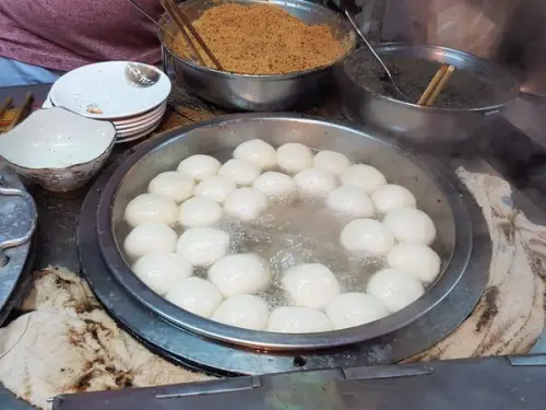我們先試了經典款的「脆炸湯圓紅豆湯」,紅豆湯香甜溫潤,搭配酥脆的炸湯圓,每一口都有酥濕交融的口感,還加入芋頭和珍珠,層次感直接拉滿!這碗湯就像阿嬤年節準備的甜品,一口下去滿滿的溫暖與驚喜。