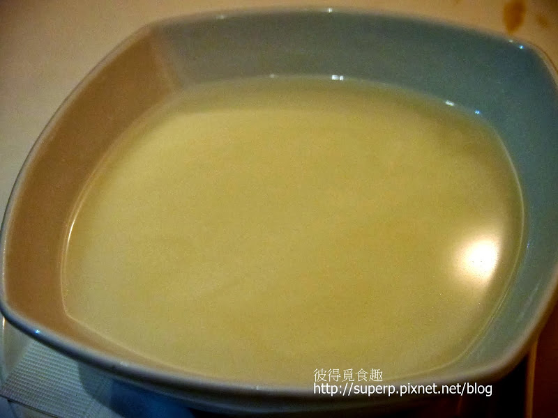 養生杏仁甜湯(杏仁味頗重,很香。和我在于記杏仁豆腐喝到的杏仁汁很不一樣,因為于記的杏仁汁看起來跟牛奶差不多。但這邊的杏仁甜湯是如果不動他,裡面杏仁的部分會慢慢沉澱。我其實搞不懂哪種比較好,不過感覺這種似乎比較天然,好喝。推!)