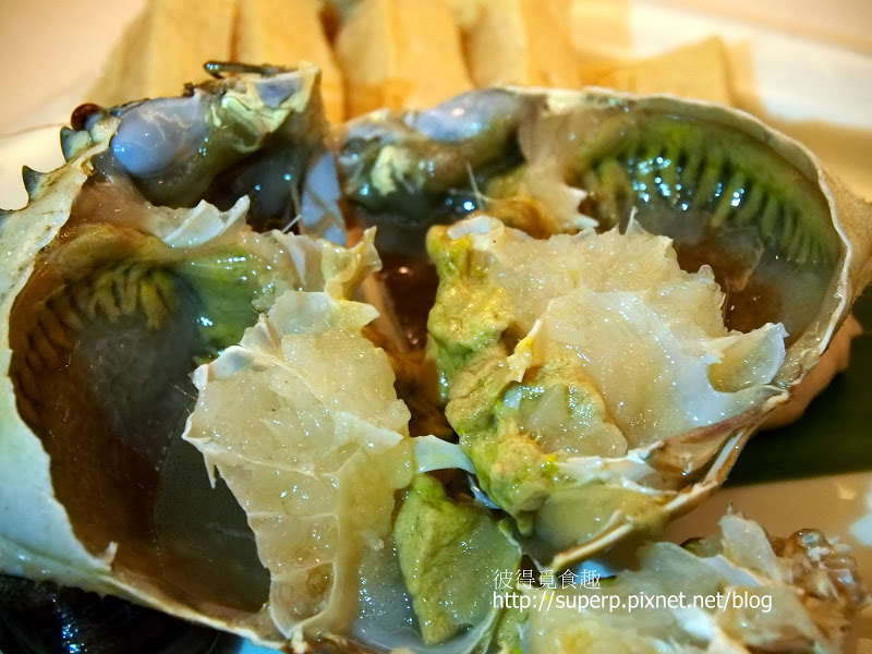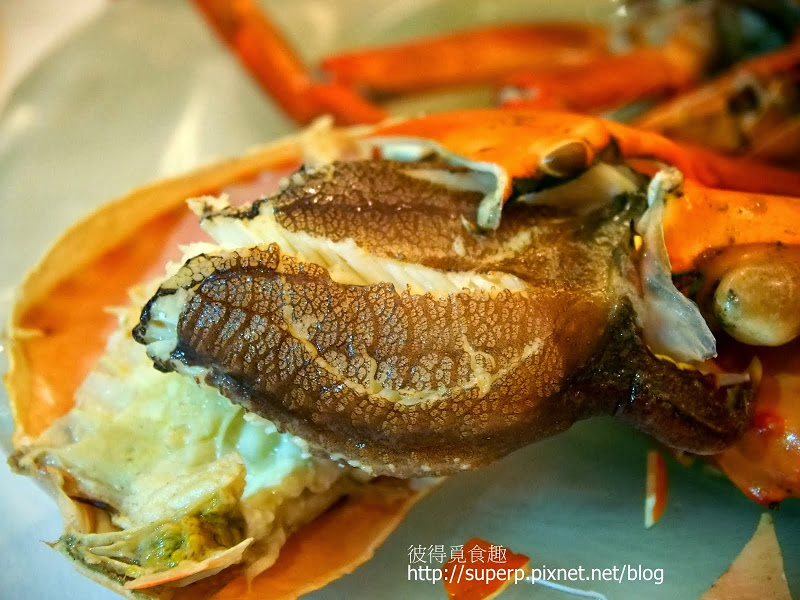 斯里蘭卡大沙公(用火鍋煮過後,螃蟹的肉變的極為鮮美,連冷掉後還是很甜無腥味。基於是現殺,新鮮度當然不在話下,殼跟肉可輕易的剝離,而且極為飽滿。忘記拿其他東西當比例尺了,不過這蟹螯真的很巨大,肉很多,吃起來爽度極高,特推!)