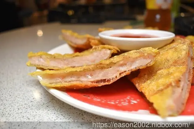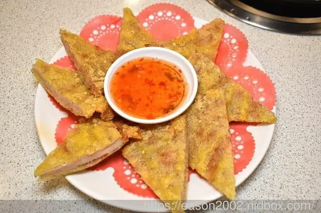 酥脆可口的月亮蝦餅,帶著濃濃的蝦香,沾上店家附的泰式酸辣醬,熱熱吃、最好吃~!!!