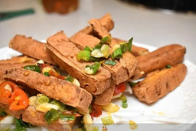 精心嚴選甲子園的臭豆腐,味道超夠味,特別切成條狀,下油鍋酥炸呈金黃色後撈起,加入蔥、蒜、辣椒拌炒,臭豆腐吃起來香、酥、脆。