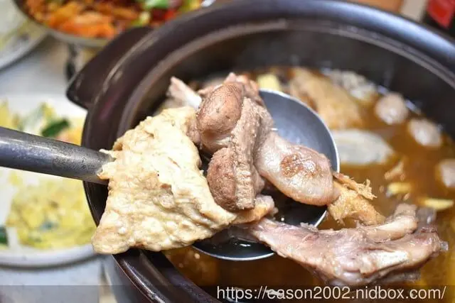 以老薑下去精心熬煮的湯頭,越煮越香,精心嚴選宜蘭在地小農所養殖的黑面鴨,薑母鴨肉吃起來肉質軟嫩可口,輕輕一咬骨肉分離,佐上店家特調的薑母鴨沾醬(腐乳醬),風味無限。