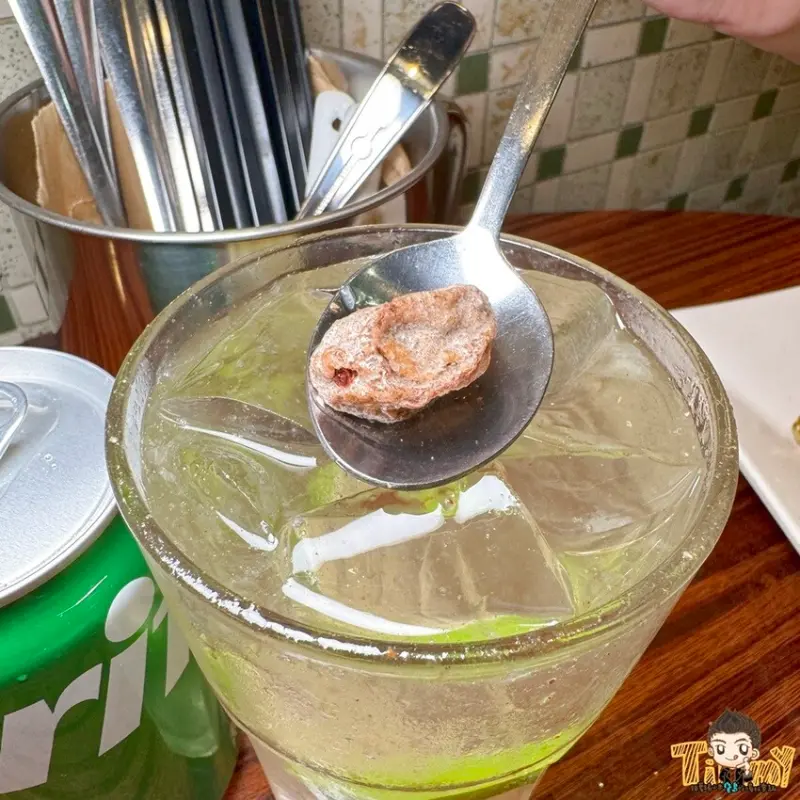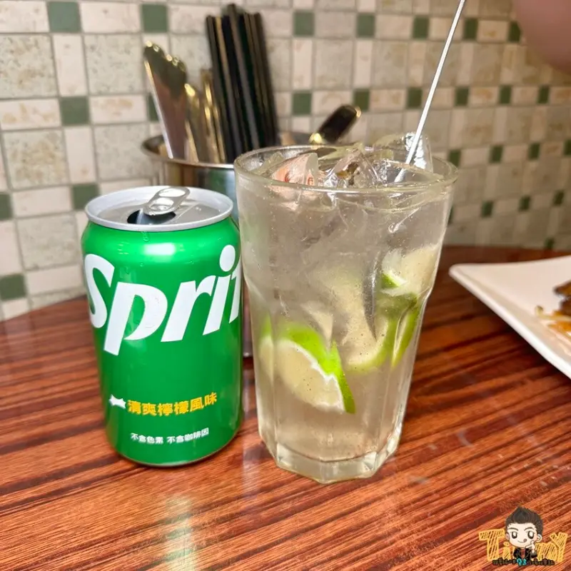 鹹檸七(80元)有鹹檸檬片、酸梅和雪碧,鹹鹹甜甜的很解膩喔!