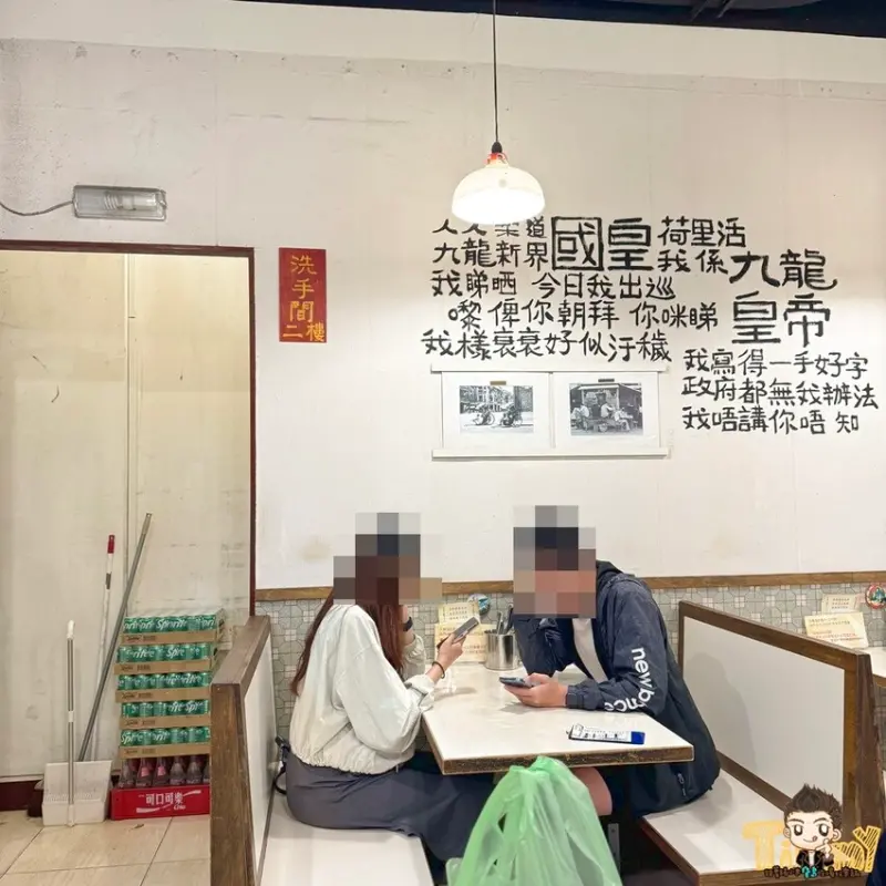 店內裝潢有港式茶餐廳的懷舊氛圍,座位是卡位、折疊桌椅。