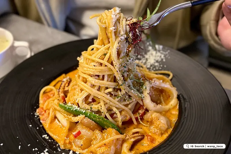 這道義大利麵以鮮蝦與章魚為主,搭配濃郁的粉紅醬,海鮮的鮮味和醬汁的香濃完美結合。義大利麵煮得剛剛好,口感彈牙,是愛吃海鮮的朋友絕對不能錯過的一道菜。