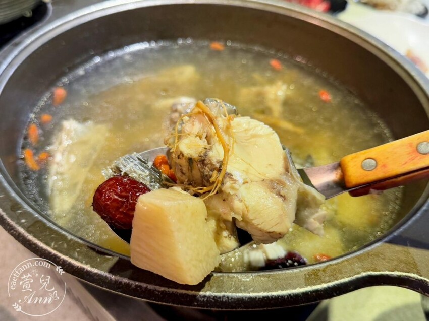湯頭以 枸杞、紅棗、當歸、人蔘 ,下去熬湯