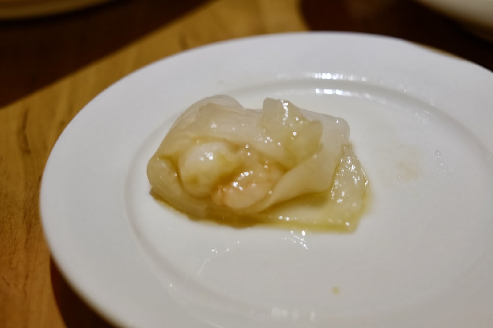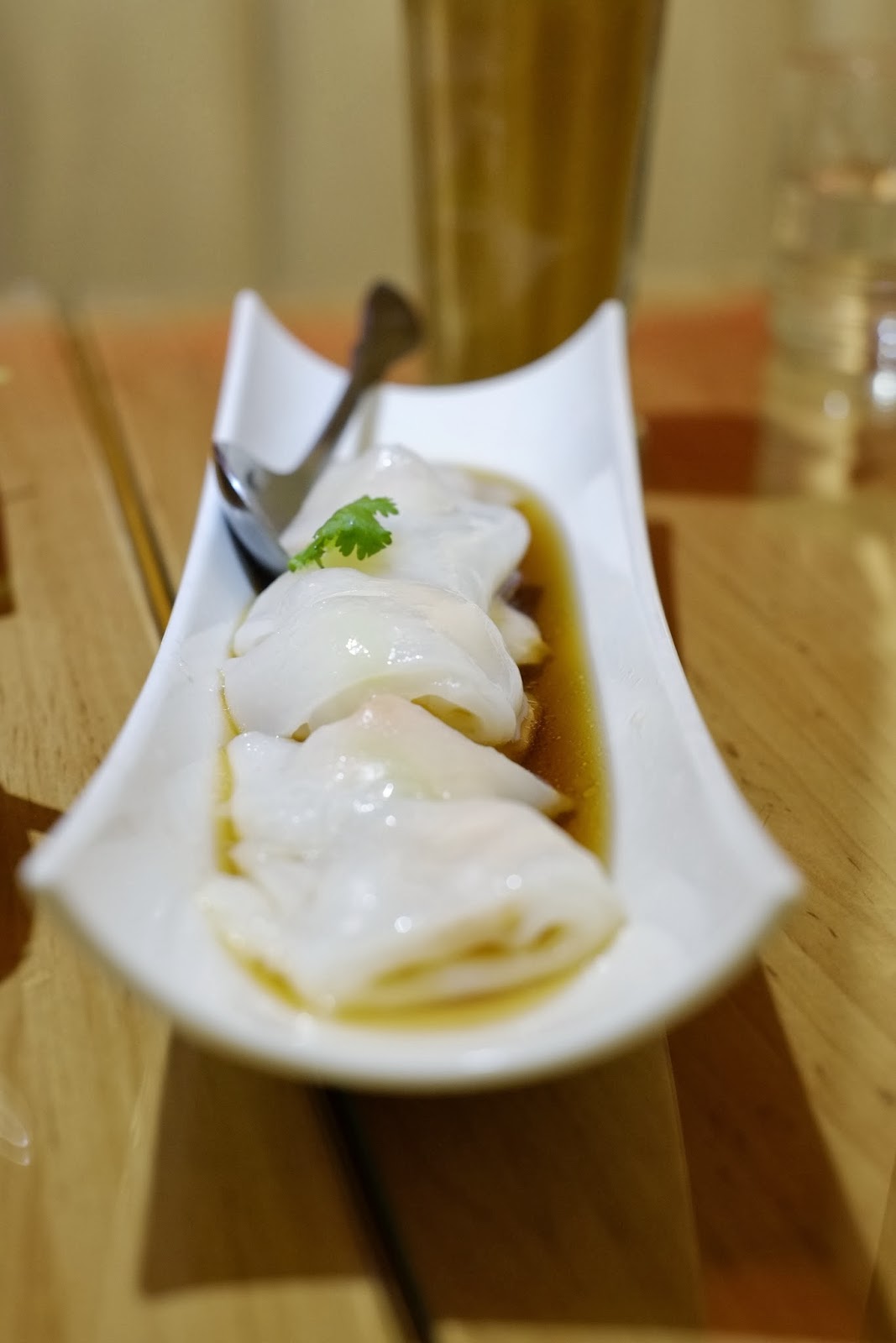 蝦仁腸粉,有點像粿仔條的放大包著鮮蝦,帶著QQ的口感沾著醬油與非常大隻的鮮蝦,果然很對味。蝦子很新鮮,不是放那種小小的蝦仁喔