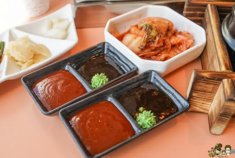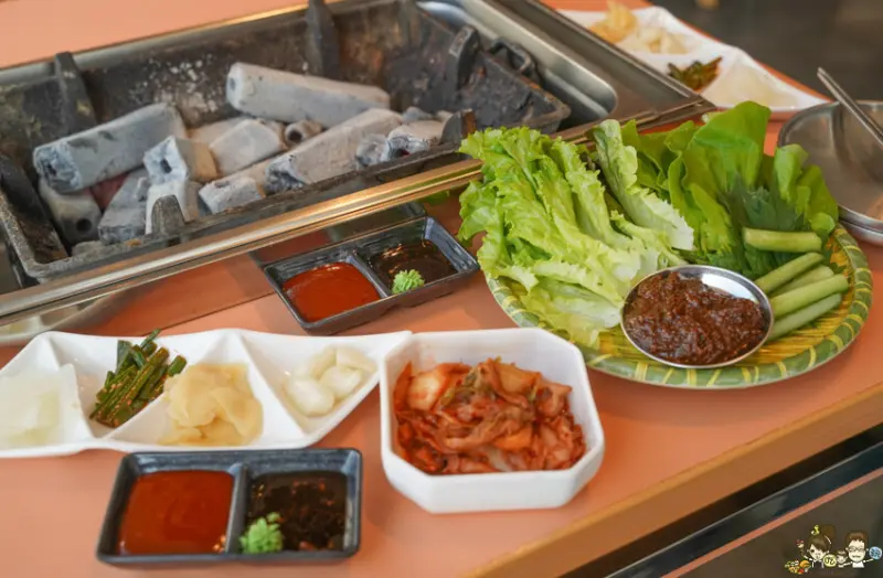 套餐都會附贈手作韓式小菜、韓式泡菜、沾醬、包肉生菜(辣醬)