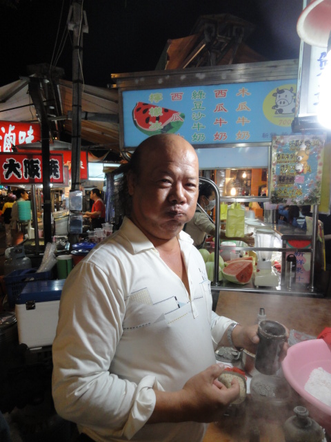 而這一年來最新崛起的,還有一攤賣狀元糕的老闆, 因為長相酷似電影功夫裡頭的火雲邪神, 他的攤位前總是擠滿了人要和他拍照!