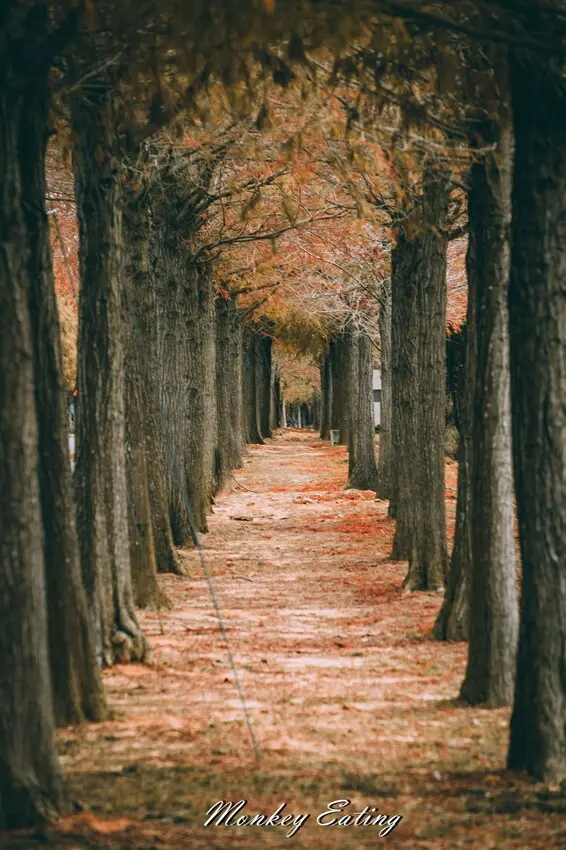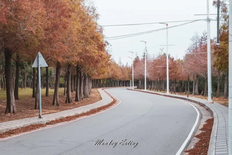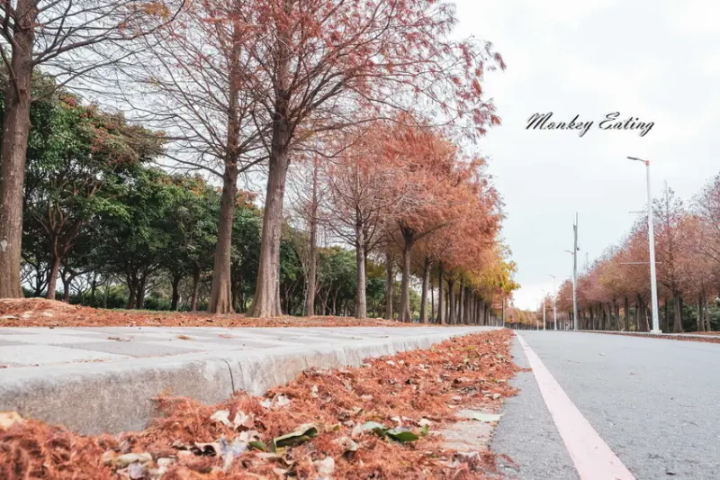 這裡的落羽松樹齊齊整整地站成一排,站在人行道旁隨手都能拍出好看的延伸感背景。