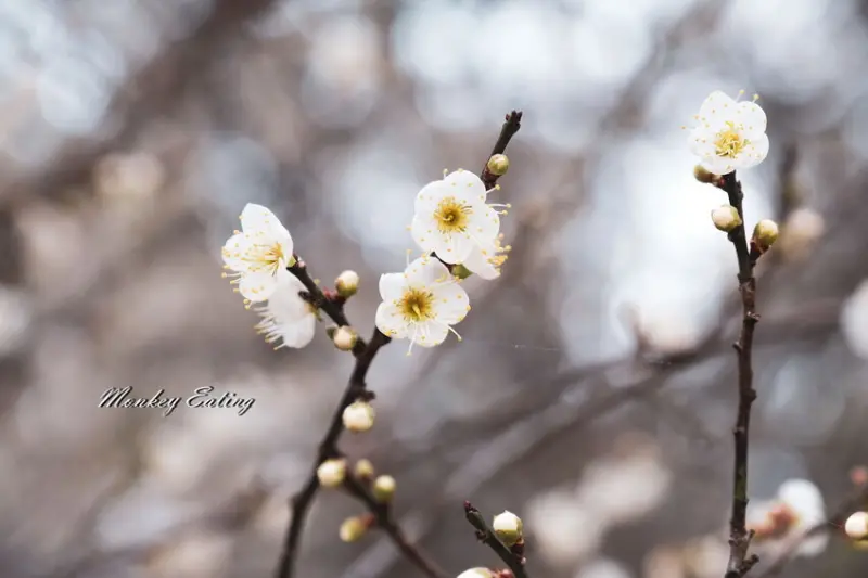 遠方可見麗寶樂園摩天輪,有幾處的梅花也開了~
