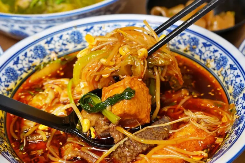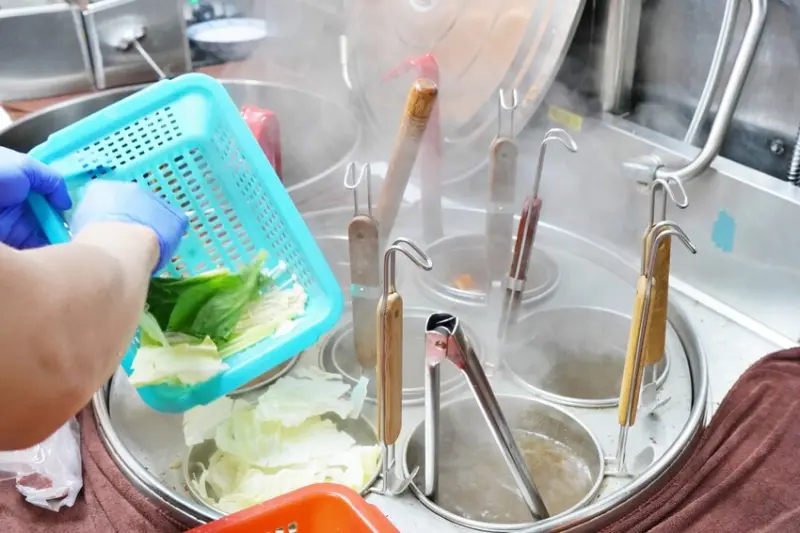 鍋內基本食材同樣也有超過10幾種,與前面的「經典紅油冒菜」擁有相同的食材組合。