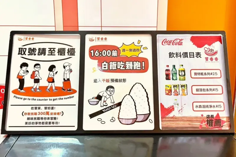大胃王的福利來了!凡是週一至週四的16:00以前,內用即可享白飯吃到飽!剛好冒菜本身就是下飯神器,當然要給它吃得飽飽的~
