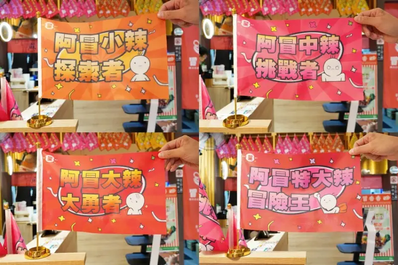 最搞笑的是,送餐時還會附上這次挑戰的辣度旗幟,像魚編這次吃的就是微辣,被歸類在膽小鬼等級,我哭XDDD 其他辣度就等大家來挑戰吧!