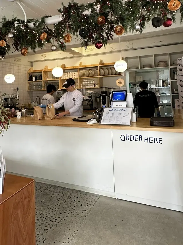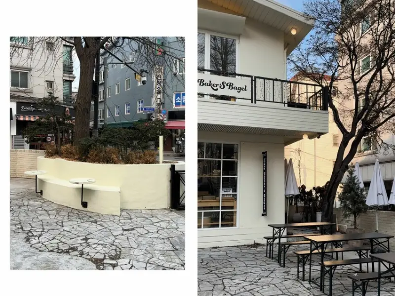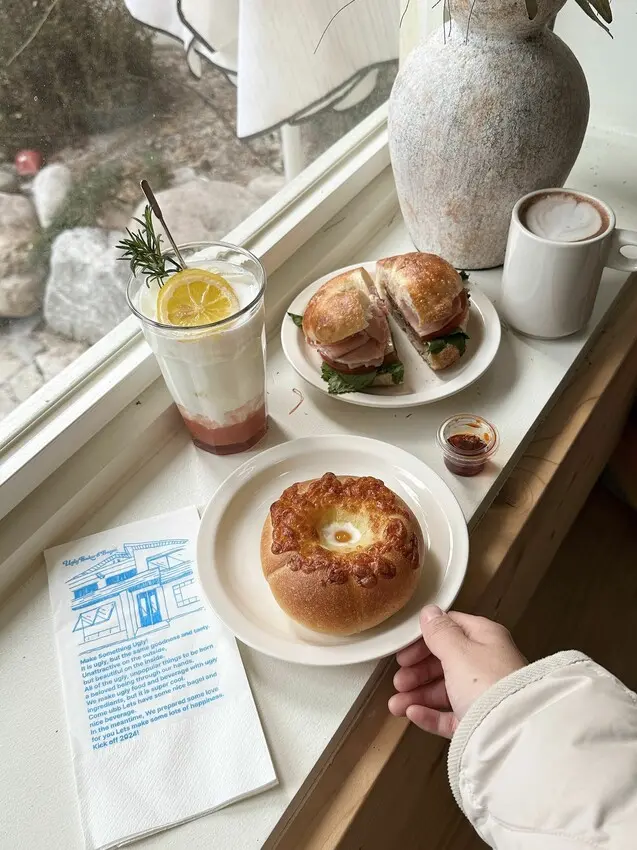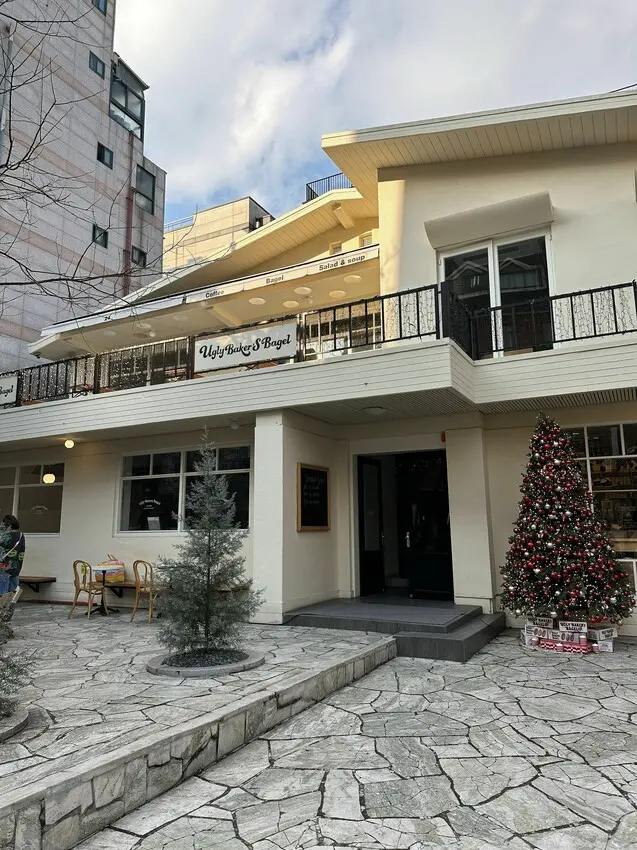 這次一月跟朋友前來韓國旅遊,無意間搜尋到這間,在首爾新堂洞2024年3月新開不久的咖啡廳『Ugly Bakers Bagel 』,新堂站6號出口步行約5分鐘就可以到達,位在巷弄內,獨棟奶油風建築占地超大,還有庭院,店內販售超多種類貝果,有鹹、有甜,還有包餡的貝果,每個看起來都好好吃,店內的一樓有靠窗座位,二樓有包廂座位、室外座位,每個角落都超好拍、採光非常好,店內享用餐點不限時,有來首爾旅遊的你,喜歡安安靜靜享用早午餐、點心,絕對不能錯過這家好店喔!