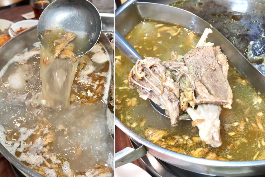 ▼招牌「燒酒薑母鴨」湯頭加入老薑和整瓶米酒還有20種以上中藥材炒拌,煮滾後香醇濃郁帶酒香,暖胃不燥熱。剛上桌酒香濃厚,煮15分鐘後酒精揮發變得甘甜,這時候煮料最適合