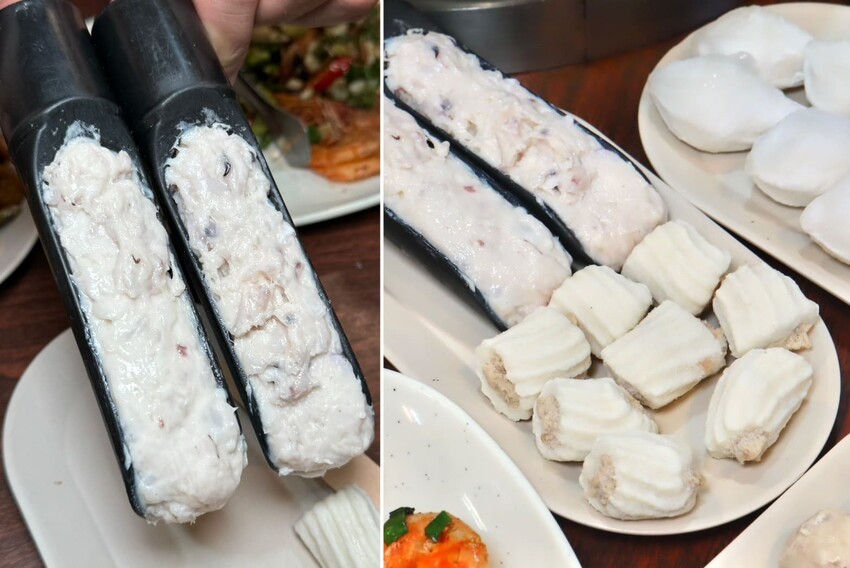▼大推帝王筒一定要點!新鮮魚漿裡面有滿滿的花枝,每一口都吃得到Q脆的花枝~真材實料看得到!
