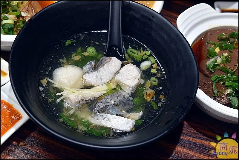 海鮮湯頭用虱目魚骨加上大骨熬煮,再加上油蔥酥及薑絲提味,味道鮮甜更有層次感超好喝,喝不夠還可以免費加湯喔,老闆真的很佛心!!