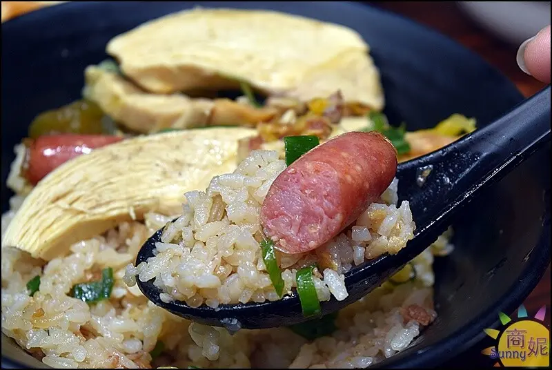 這碗炒飯主食閹雞肉以及飛魚卵雞腿捲,美味更加分。