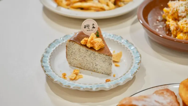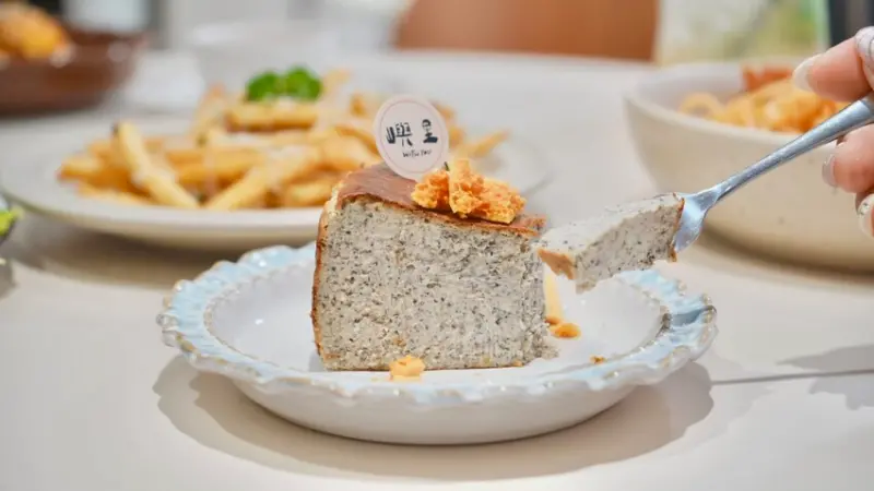 台中吃甜點也可以來嶼里With You,推薦他們家的巴斯克乳酪,軟綿入口即化的口感,搭配醇香的芝麻,綿滑細膩,乳酪與芝麻的雙重濃郁,令人回味無窮!