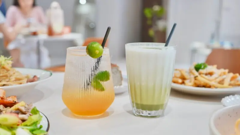 推薦的飲品有靜岡抹茶和百香金桔氣泡!兩杯都有絕美漸層超適合拍照,百香金桔氣泡喝起來清爽果香四溢,靜岡抹茶則微苦醇厚,搭配鮮奶口感更佳滑順!
