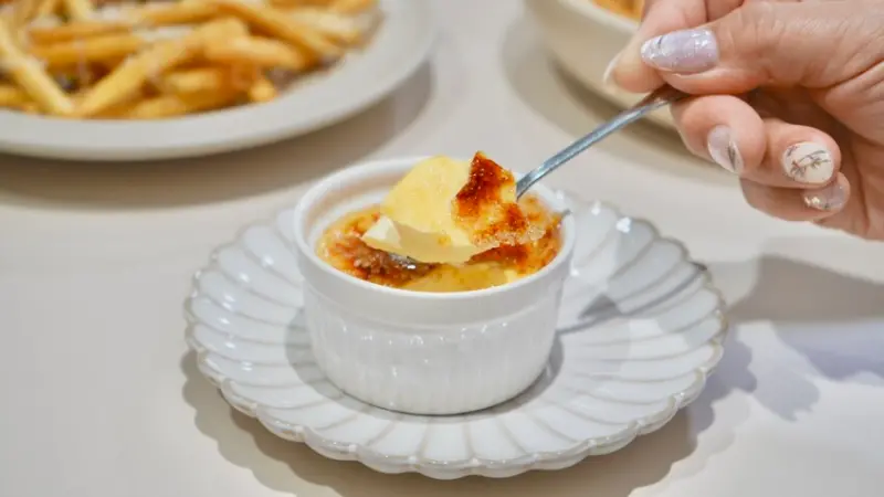 升級套餐就能享用法式焦糖烤布蕾,鹹食後來點甜的最完美!焦糖表層香脆,甜度恰到好處,內餡細緻柔滑,奶香濃郁,讓人忍不住一口接一口~