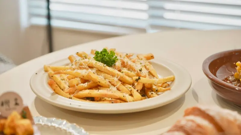 開胃菜推薦「松露薯條」,上桌立刻飄來濃濃松露香,薯條酥脆又保有馬鈴薯的綿密,加上松露和起士鹹香,好吃到停不下來!