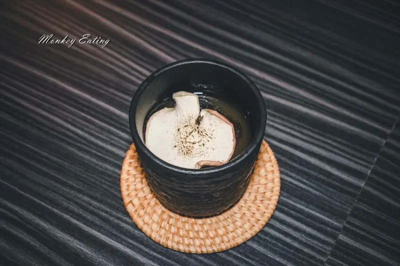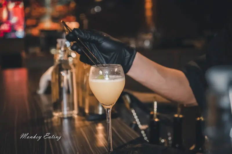 這杯調酒看似簡單,喝起來酒韻很深厚,上面是炙烤過的蘋果乾,整體喝起來給人一種優雅且沉穩的感覺。
