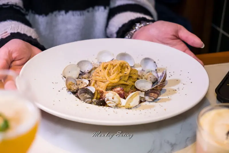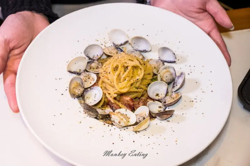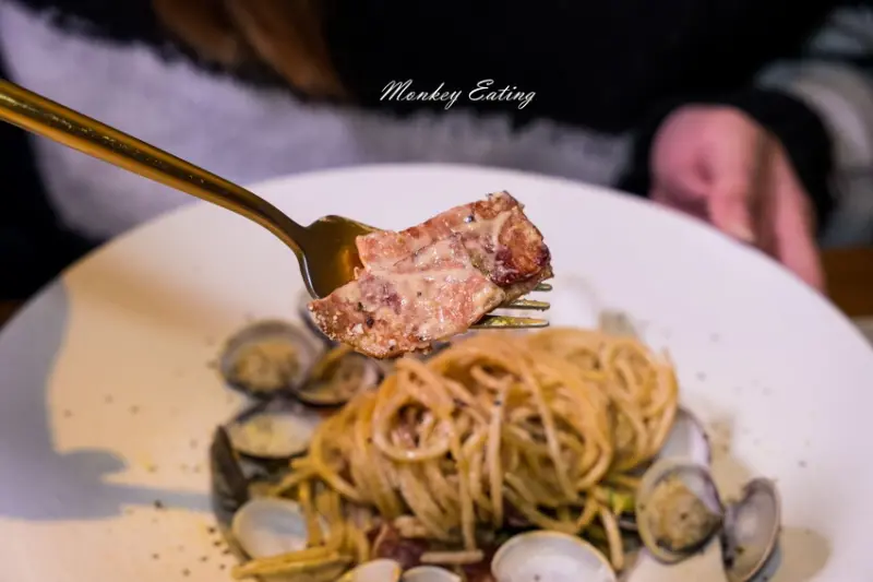 有蛤蜊滿滿的鮮甜,還有奶油培根那種迷人的濃郁滑順感,麵條口感恰到好處,看到培根好大一塊心中充滿小確幸。帕馬森起司味道很香濃,卻又不會有多餘的膩感,蠻推薦的唷。