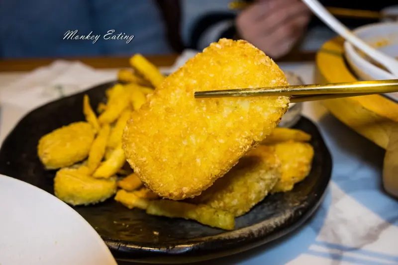 炸物拼盤有薯條、雞塊、薯餅,與朋友聊天的配酒好物,附上主廚特製的塔塔醬,非常百搭。