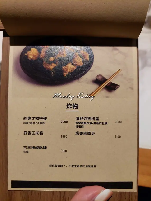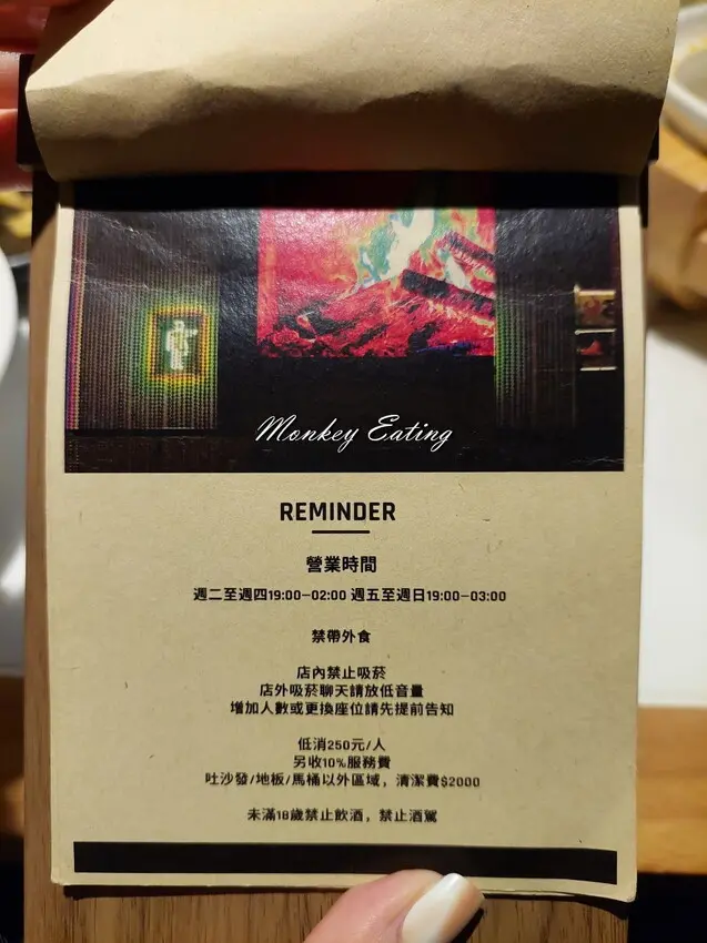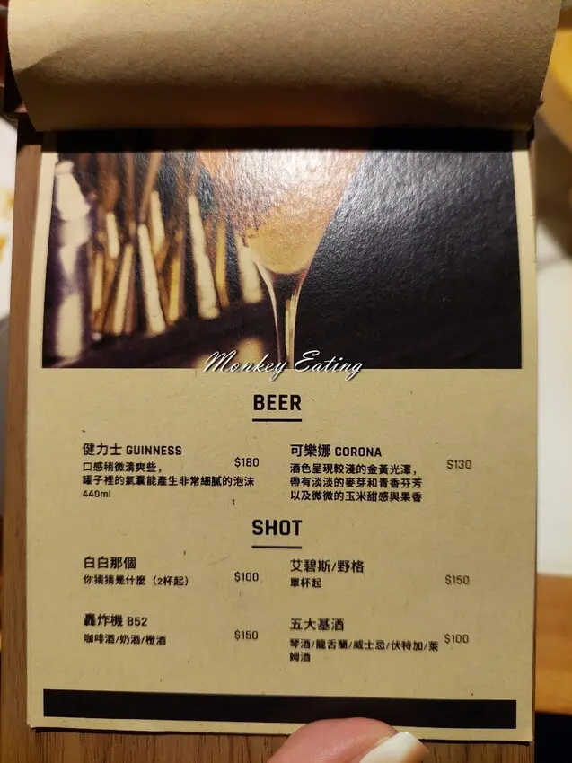 不管是來用餐或喝酒,每人低消/$250元,另有額外+10%服務費,主打調酒、啤酒、熱食、炸物等配酒小點。初訪的朋友不知道想喝什麼酒,也可請調酒師為你推薦適合你的口味,餐點都是現點現做,需要耐心等候一下唷~